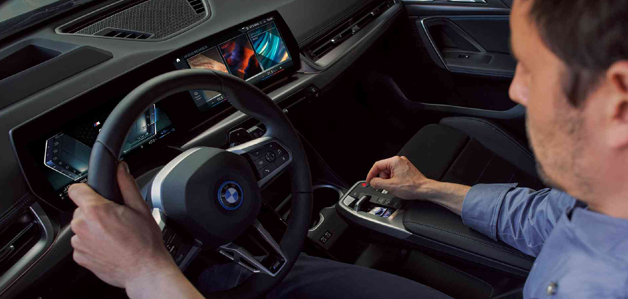 • The modern interior is equipped with high-quality materials and innovations such as the BMW Curved Display